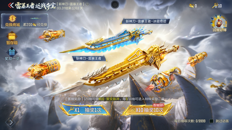王者近战夺宝火热开启,为近战爱好者带来年度盛宴。本次活动迎来重磅首发斩神刀-雷暴王者及其冰霜奇迹皮肤。同时,累计抽取指定次数,可直接解锁M16-聚变脉冲与斩神刀-雷暴王者-冰霜奇迹等稀有奖励,保底机制让追求更明确。