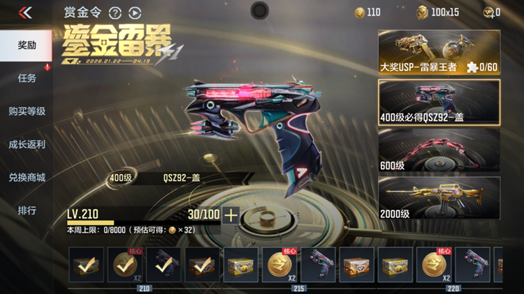 2026年S1赏金令全新赛季“鎏金雷暴”正式开启,带来海量首发与返场奖励。本期核心首发阵容包括副武器USP-雷暴王者、高爆手雷-雷暴王者以及“盖”的套装武器。更令人期待的是,COP 357-雷霆王者这把强力副武器迎来返场,现在正是补齐收藏的机会。