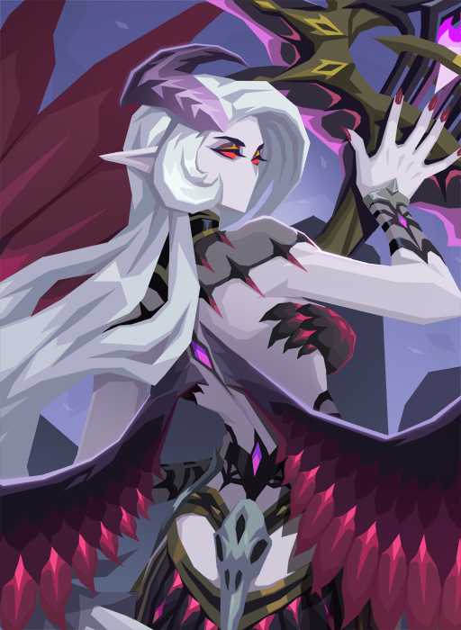 (她的真名已被裂隙深渊的黑雾吞噬,唯有那柄缠绕冥火的终末之镰,以所过之处的死寂为证,成了她唯一的代名词。)