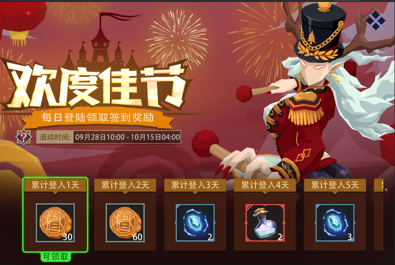 活动内容:佳节来袭,幸福满满。活动期间,每日登录游戏即可免费领取 “月饼”、“王者英魂”、“幻彩之尘”等。