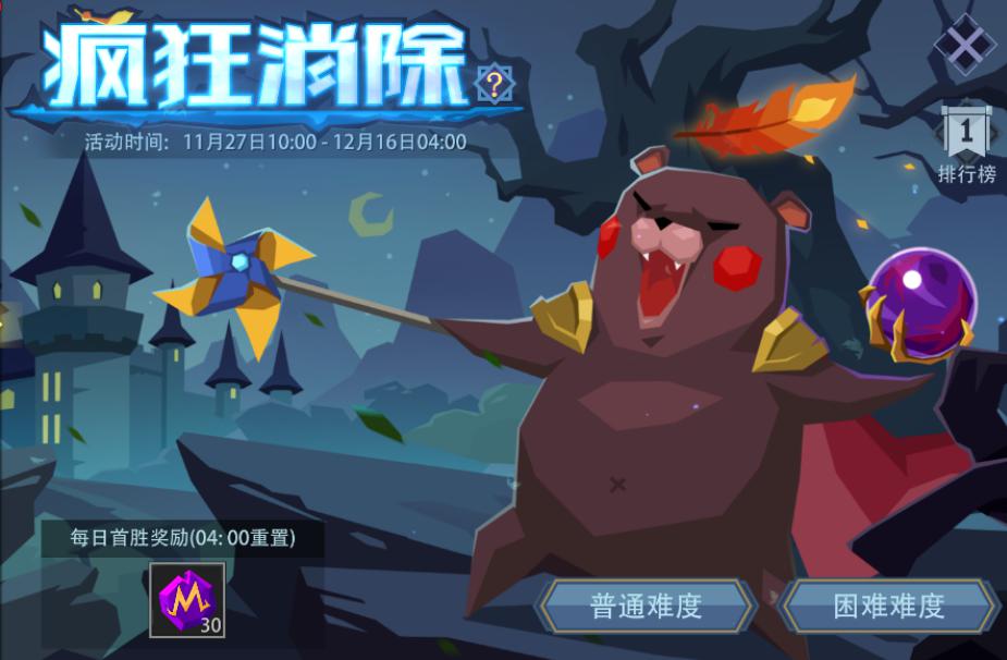 活动内容:需要将三个相同图案的方块点击到左侧的槽位中,使其消除;每成功消除1次,积分+10。游戏中共有7个槽位,请合理进行使用。当“槽位已满”或“全部消除”时,都会出现上浮提示,并视为游戏结束。游戏分为普通、困难两种难度,无论哪种难度下进行游戏,只要每日首次挑战成功即可获得奖励;次日凌晨04:00刷新。挑战成功才有机会进入排行榜,按照难度和分数进行排名。