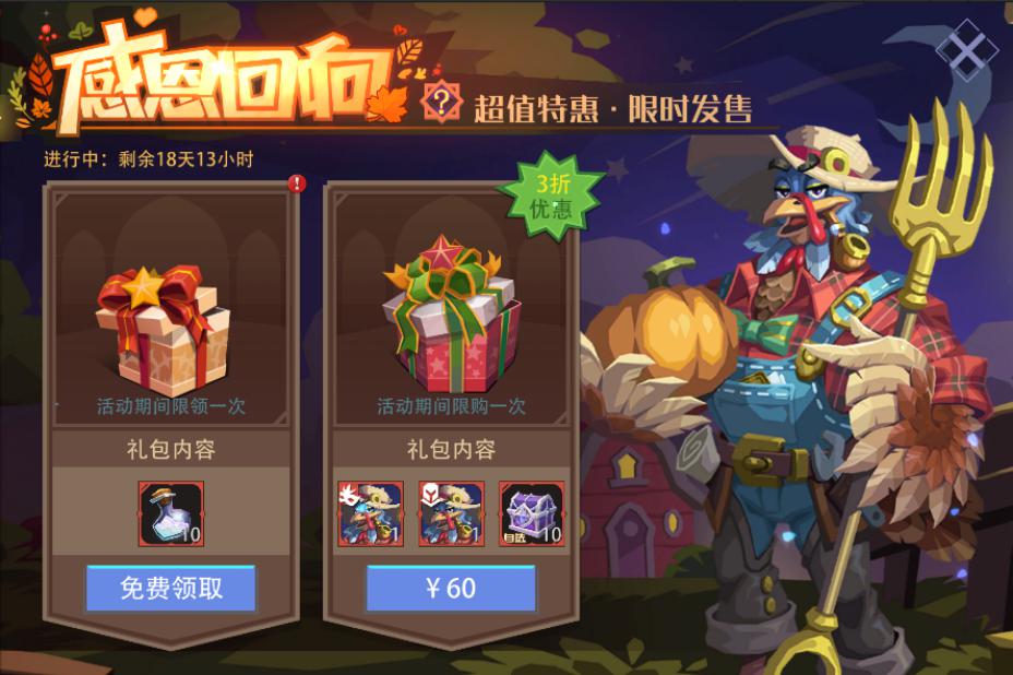 2、新增感恩节限定皮肤「农场大亨」(英雄“怒鸮”专属),可在活动“感恩回响”兑换;
