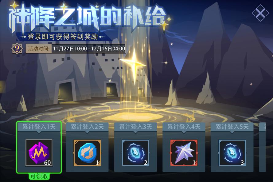 活动内容:受光之女神的庇佑,神降之城物资丰厚。活动期间,每日登录游戏即可领取“魔晶”、“神祗碎片”、“王者英魂”等丰厚奖励。