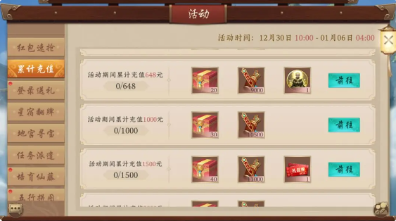 活动期间,累计充值达到一定数额即可领取额外奖励!