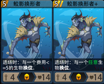 效果:进场时:与一个费用<=5的生物换位。