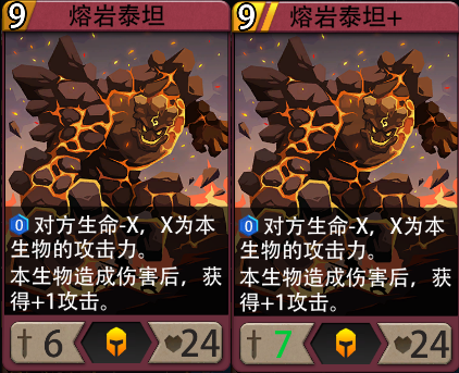 效果:(0费) 对方生命-X,X为本生物的攻击力。本生物造成伤害后,获得+1攻击。