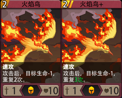 炎凰降临:(被动)你每获得10层余烬,将一张非衍生的[火凤凰]放入手牌,其法力消耗为1。