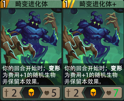 效果:你的回合开始时:变形为费用+1的随机生物并保留本效果。