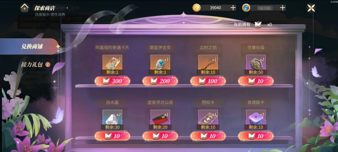 4.2 探索商店在活动的兑换商铺中,本次提供【阿盖娅的奇遇卡片】、传说生产珍宝【碧蓝伊吉安】等极品道具以及自选徽章礼盒可供兑换(阿盖娅奇遇卡片可兑换索菲亚;诺亚的奇遇卡片)