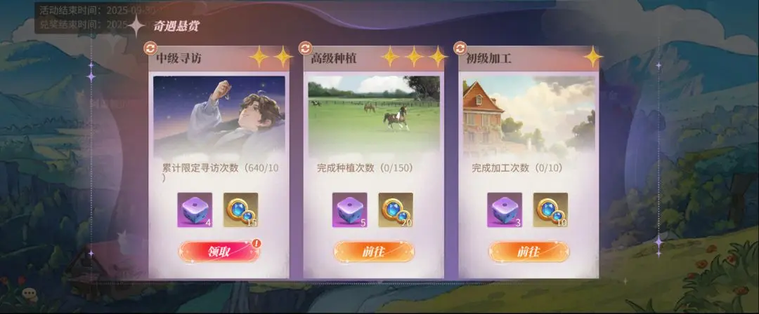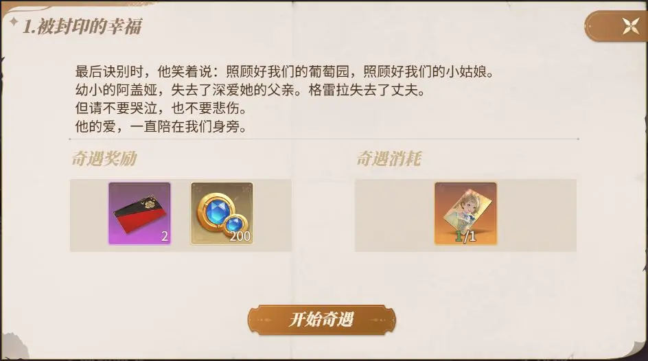 进入奇遇界面,从左至右依次点击任务气泡,可消耗【阿盖娅的奇遇卡片】开启奇遇。