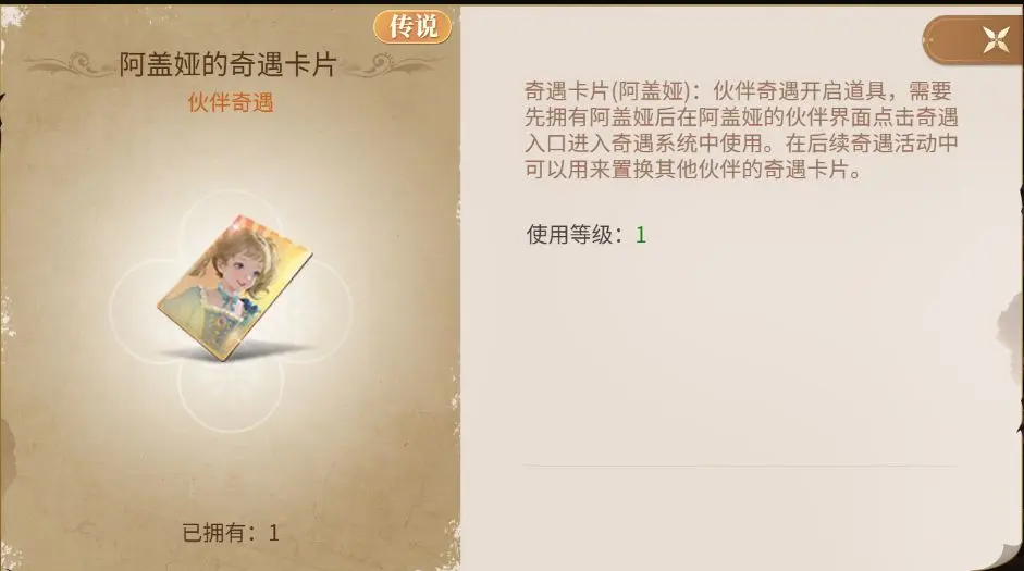 通过限时寻访【晴空正当时】,获得【阿盖娅的奇遇卡片】