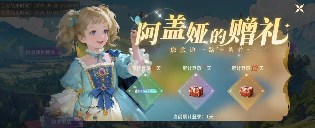 4.1阿盖娅的赠礼累计登录对应天数,阿盖娅会赠与稀有称号“陪伴阿盖娅之人”和稀有道具(含皇家寻访公函,活动普通骰子,高效肥料饲料等),旅途一路辛苦啦!