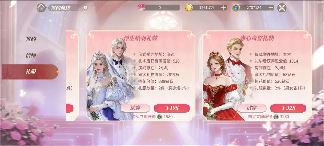 (礼装越高级恩爱值,钻石加成越多,举办地址也会不同)