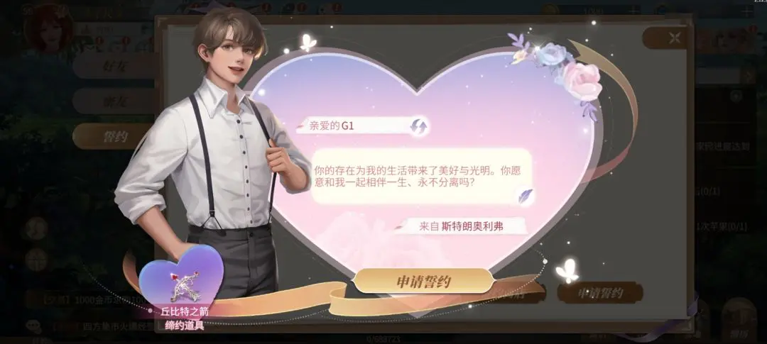 (520钻石)。双方同意后可进入誓约商店和前往誓约筹备~