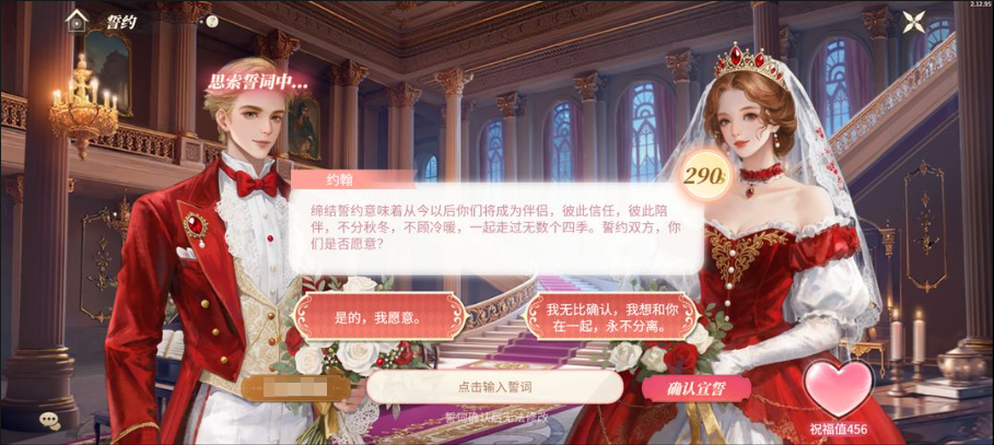 开启后会出现一段动画,动画结束后进行宣誓。宣誓完成将开启捧花倒计时,倒计时结束后誓约者可以扔花