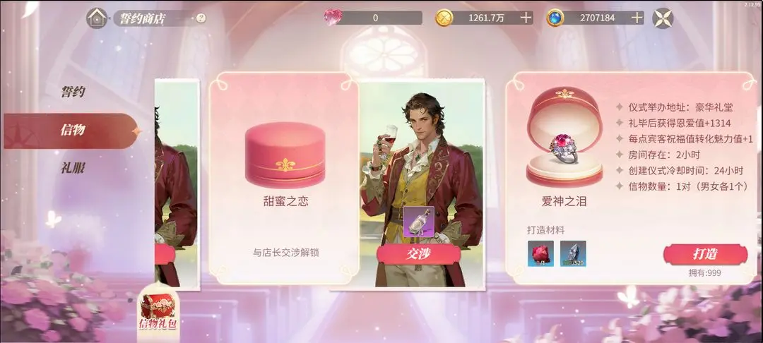 选择「信物」进行仪式(信物需要对应原矿制作,信物越高级恩爱值加成越高)