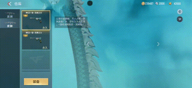 首先是81式-瑜-龙腾之力,作为一款终极品质的三国皮肤,它是拥有专属3P大厅演绎动画的。如你所见,一条神龙伴随着激昂的龙吟声腾空而起,化为精美的龙纹涂装紧贴在枪身之上,惊涛出腾龙,斩浪趁东风!