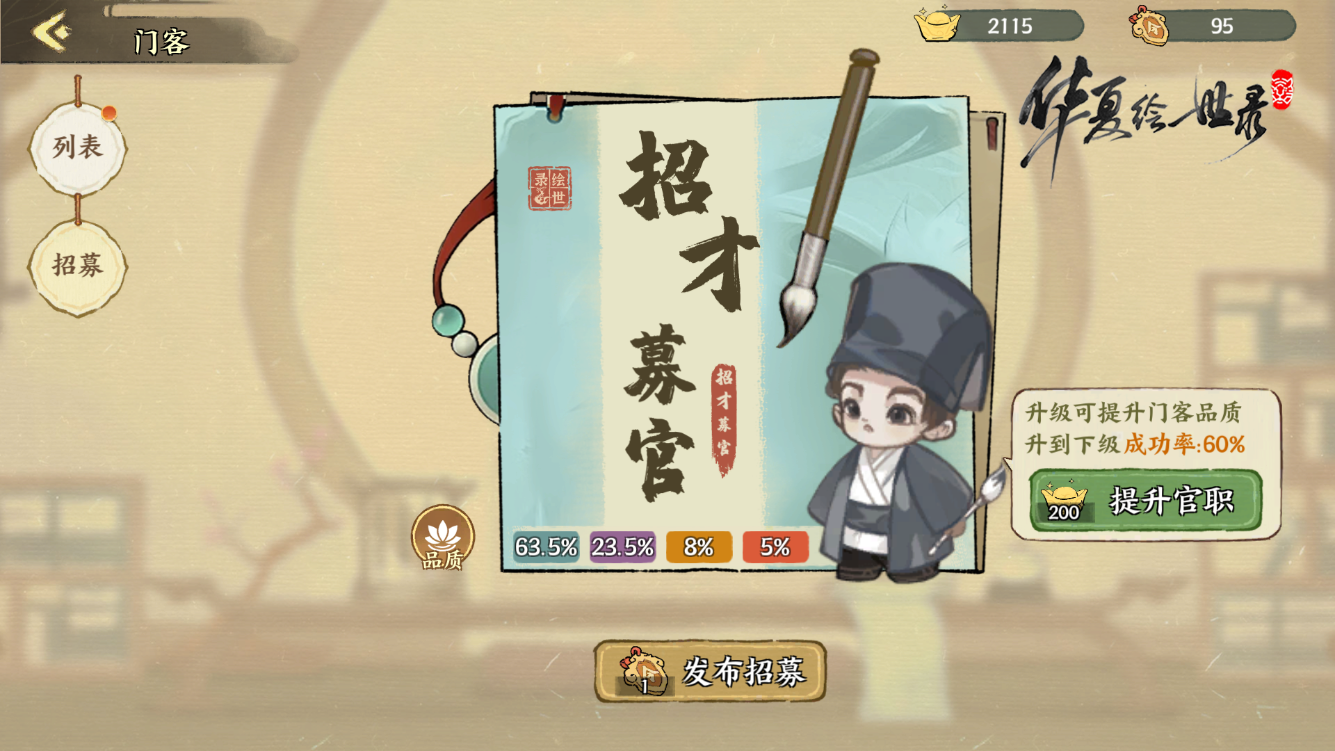 新增“门客”系统,通过招募及养成不同“门客”,提升各“诸侯国”属性
