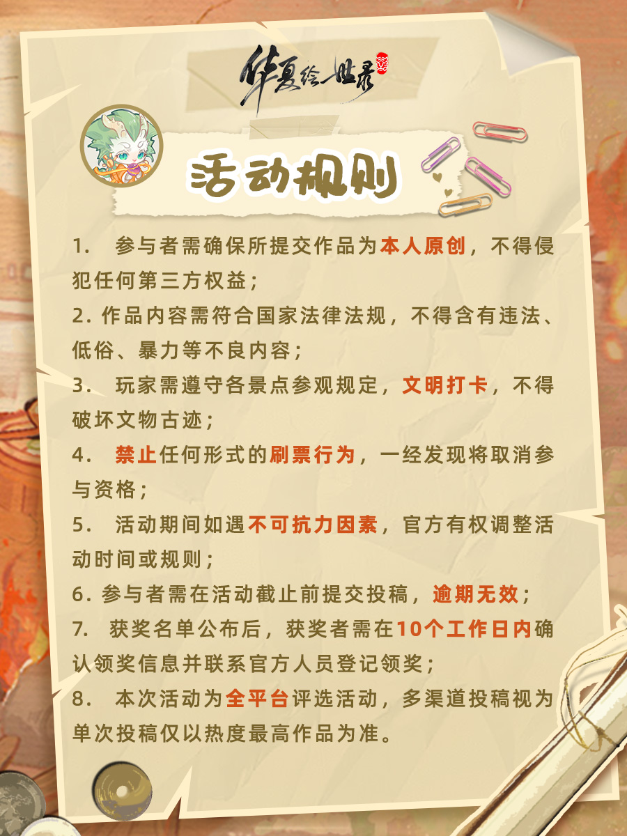 只需将游戏元素与实景同帧入画,即可参与绘世循迹之约。更有精美好礼等君来领。