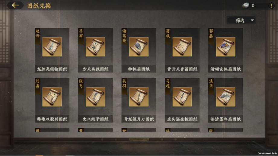 2、【天下大势】-【谋定后战】阶段,解锁“武器装备”系统后,即可使用器魂兑换想要的武将的专武图纸。激活专武图纸就可以解锁或进阶专武啦。