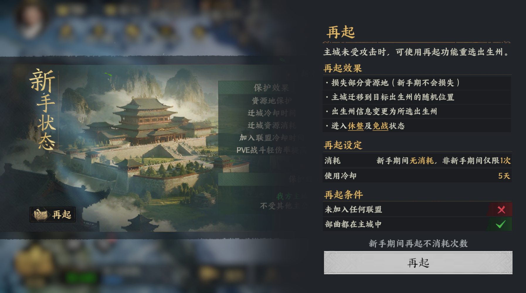 开局48小时为新手保护期,是发育黄金时间。期间主城与已占领的资源地不会受到攻击,但主动攻击其他玩家将立即失去保护!