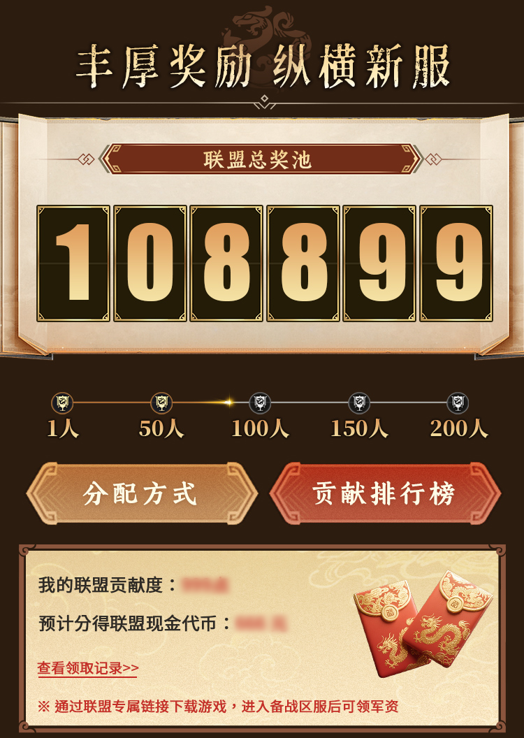 不仅如此,参与备战盟活动,完成联盟人数里程碑、各种活动任务可在活动内获取联盟贡献度,一起瓜分联盟现金代币奖池!