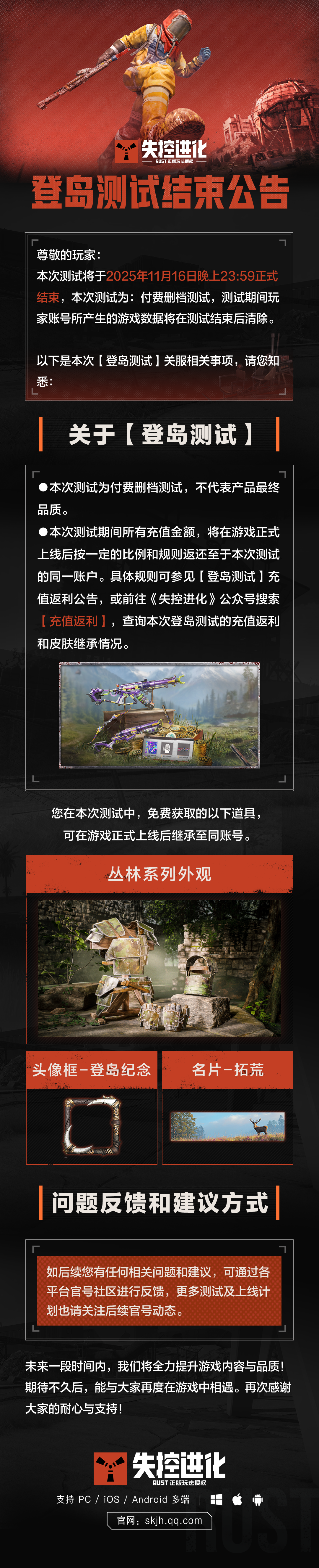 《失控进化》登岛测试结束公告