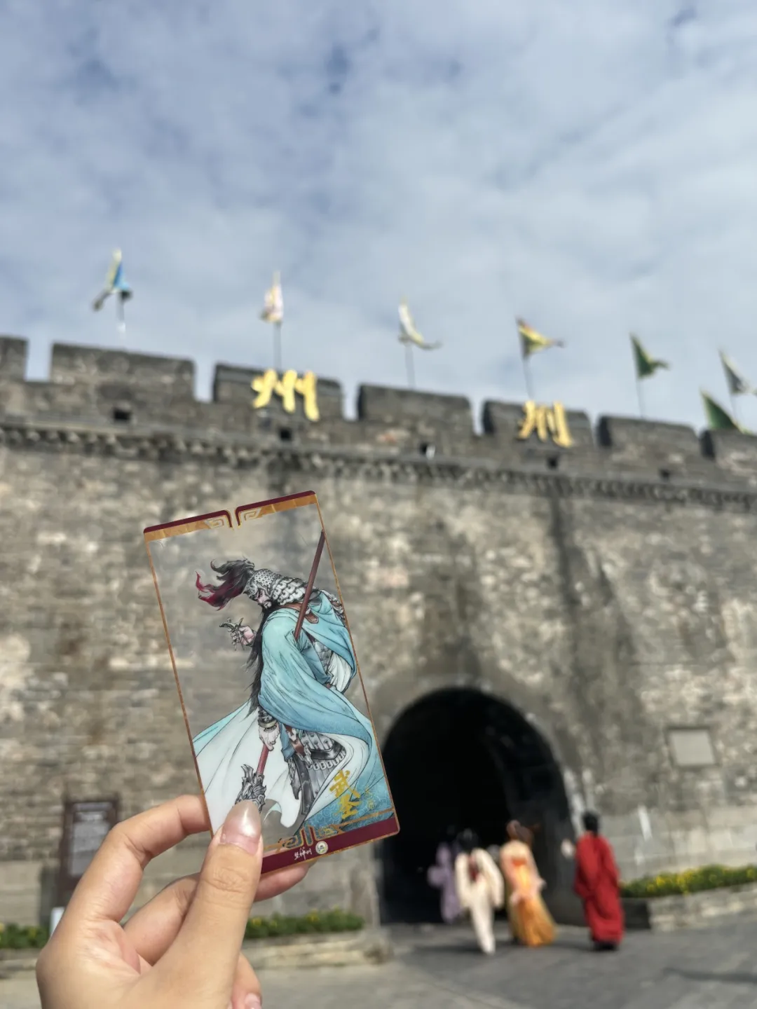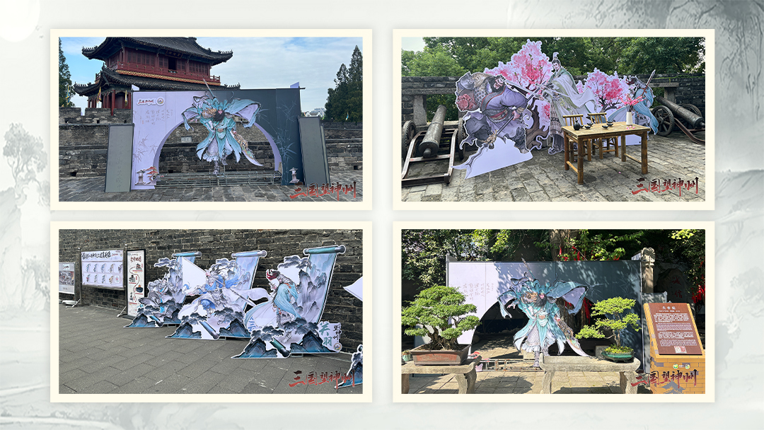 活动现场,《三国望神州》极具东方韵味与鲜明辨识度的武将立绘,与古城巍峨的城墙、斑驳的石阶相映成趣,令英雄人物仿佛自史册中走出,置身今日盛景。