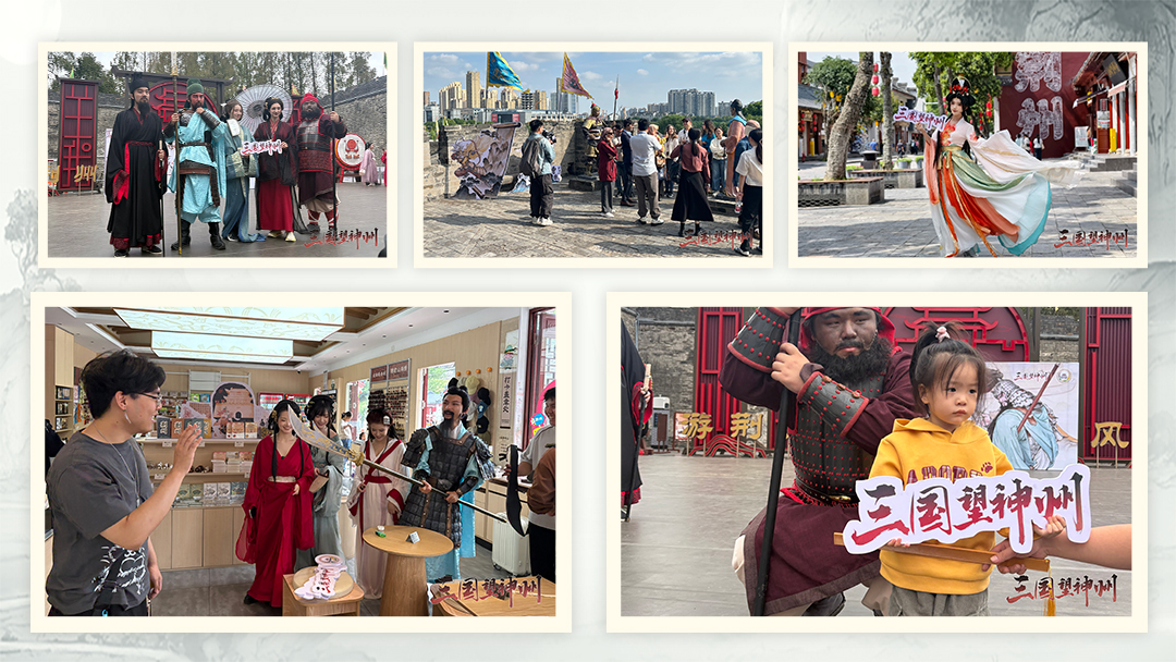 历史与现实因《三国望神州》而交织,更有中外游客纷至沓来打卡留念。中外友人在此化身三国人物,在古城之中再现当年风华。