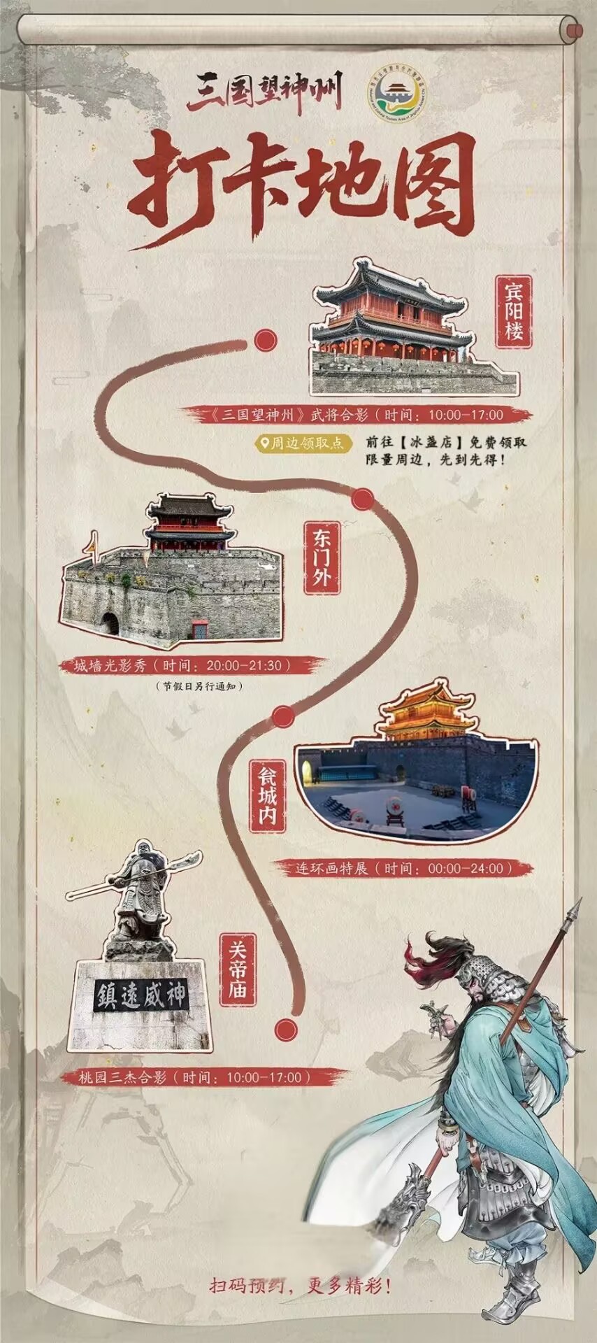 前往荆州的明公,可以根据下方地图指引,游历荆州古城,打卡赢取周边好礼。