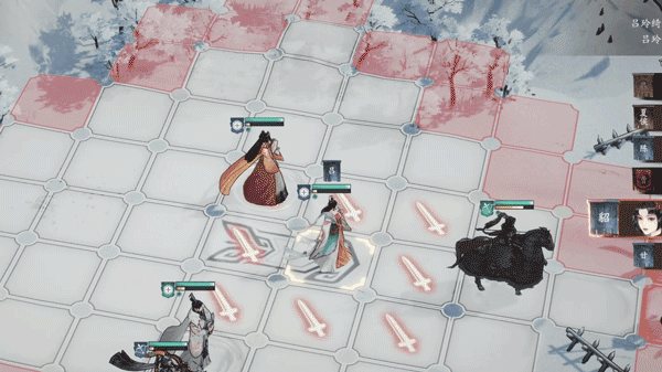 实战中,明公可让吕玲绮先手出击,并通过再移动,形成可以让其他队友合击的走位。
