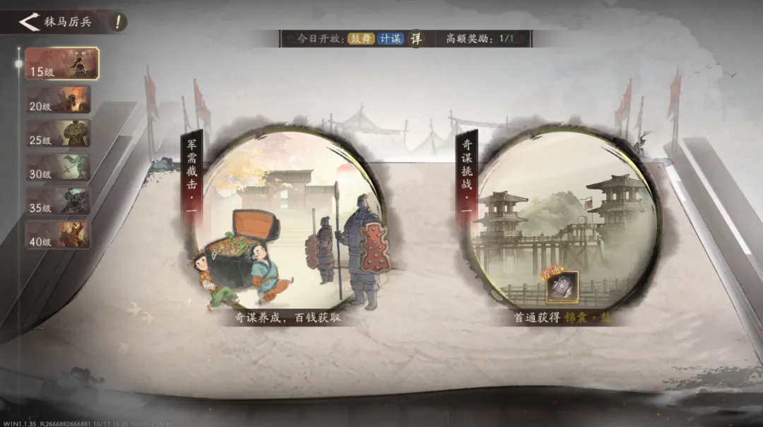 在10月23日的公测版本中,我们对志在千里玩法进行了优化。公测版本的志在千里将与兵营功能同步开启,并且增加特色BOSS、优化界面展示,让明公可以更简单直观地获取兵营材料。