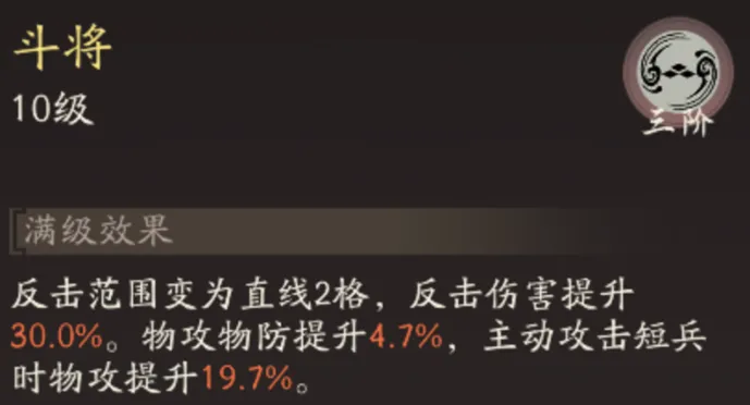 我们将于禁的军势“不动如山”调整为更适配长兵进行防守反击的效果,让长兵在前排能抗住更多敌军的攻击同时用反击打出巨量伤害,多个擅长追击的长兵一字列阵可以对进入范围的敌军造成多段追击伤害。