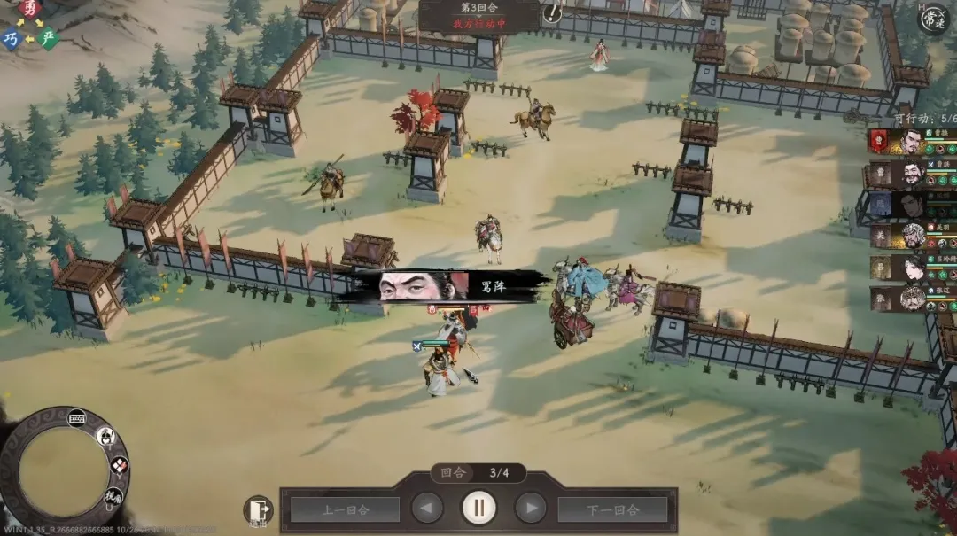 第三回合,敌方会刷新骑兵,但是因为距离不会摸到我们。我们仍然是使用曹洪