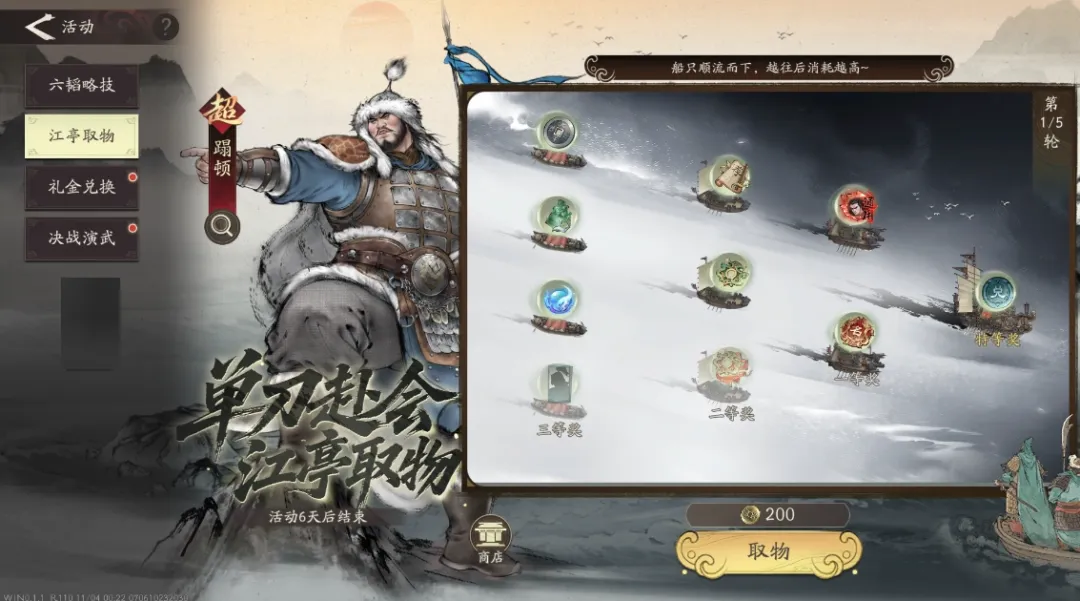 3、新增全新举才卡池“文事武备”,全服同步于11月6日6:00:00至11月19日23:59:59开放,参与举才有机会获得【超】主将张绣、曹仁或荀彧;