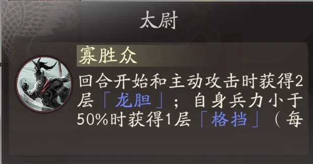每经过一个敌军可以获得1层“龙胆”,此状态可以通过各种方式来进行积累,达到7层后就可以演变为“格挡”状态,这个格挡状态就是字如其意,可以阻挡敌人的攻击一次,且可以多层叠加,所以赵云在防御能力上是有先天优势的。