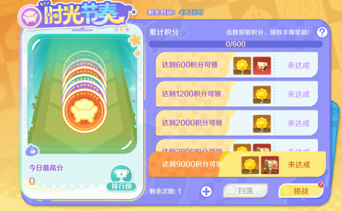 活动规则:游戏中,随机颜色的物件按一定速度下落,玩家需按照物件下落顺序,点击对应颜色的按钮,即可完成收集并且获取积分。连续收集能积攒连击,达到一定数量就会进入加速模式,得分更快!每一局60秒,但如果没及时点中,让圆块掉到底部,游戏就会立刻结束。快来试试你能得多少分吧!