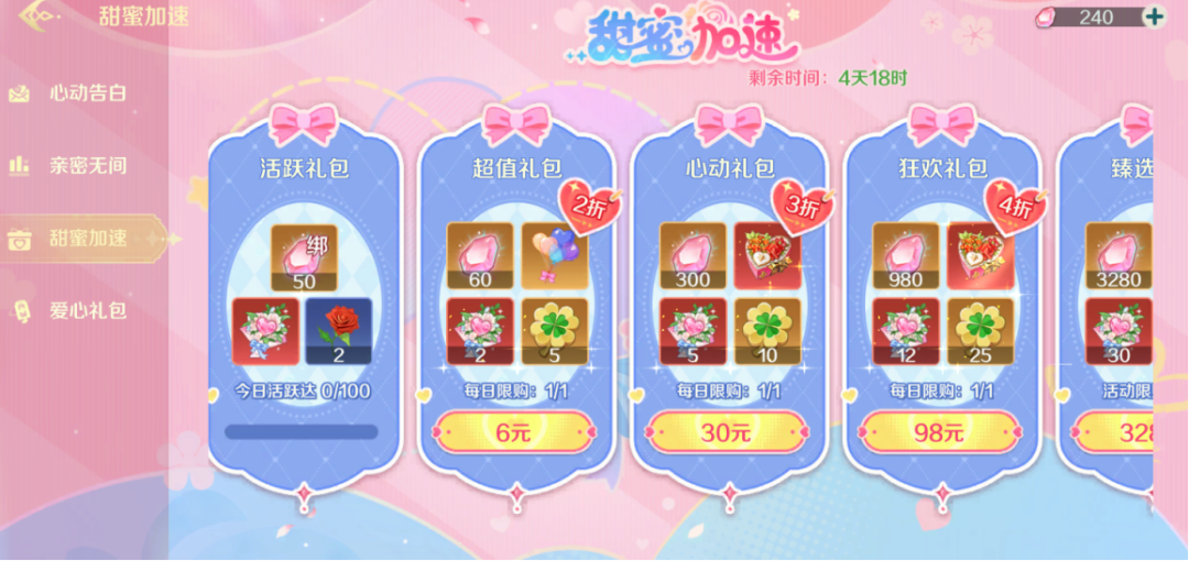 活动规则:每日05:00刷新购买次数与领取进度。完成“今日活跃度达到100点”即可领取对应奖励(每日限领1次)。6元超值礼包、30元心动礼包、98元狂欢礼包均为每日限购(每日各限购1次);328元臻选礼包为活动限购(活动期间限购1次,次数不随每日刷新)快来看看吧。