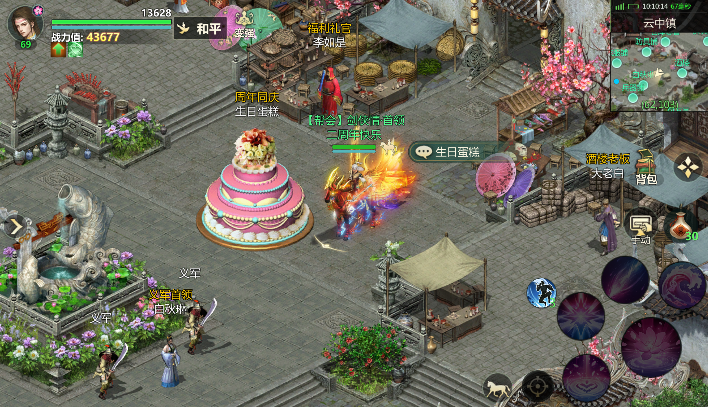与此同时,在庆典期间,云中镇广场将矗立起一座巨型生日蛋糕,大侠们可通过生日福袋为蛋糕添彩装饰,共同见证这个特殊时刻,获得专属奖励。