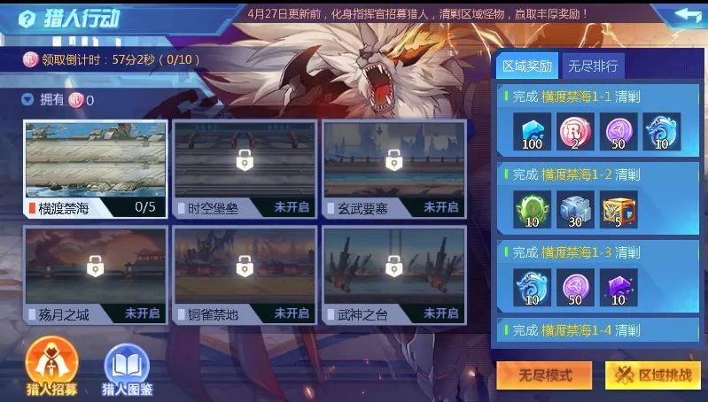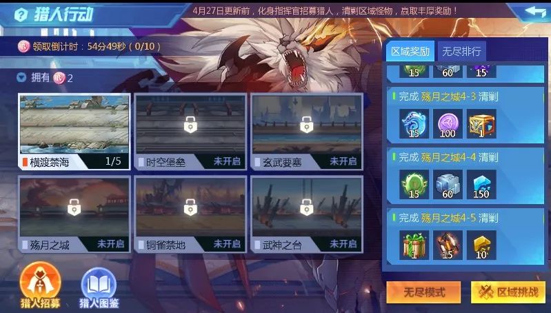 5、玩法分为区域挑战、无尽挑战两种模式: