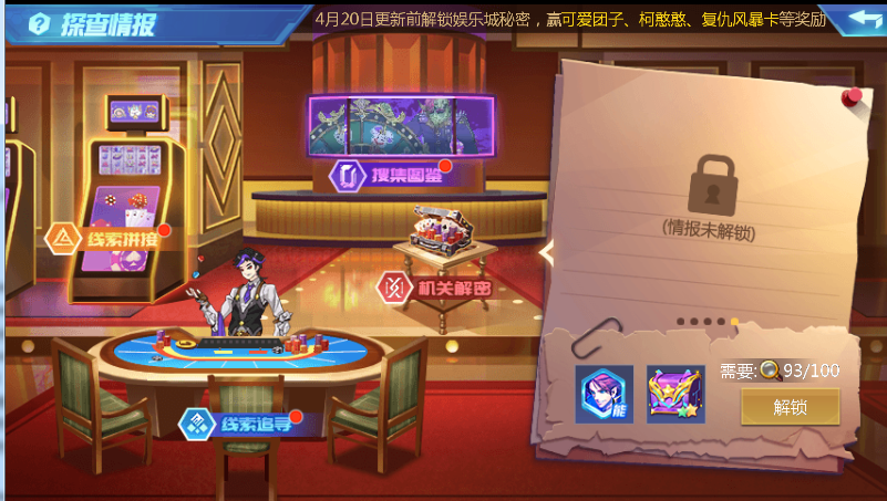 二、探查情报,赢取动态头像!4月13日更新后至4月20日更新前,猎人抵达充满未知的娱乐城,为了发掘其中的秘密,情报探查刻不容缓。