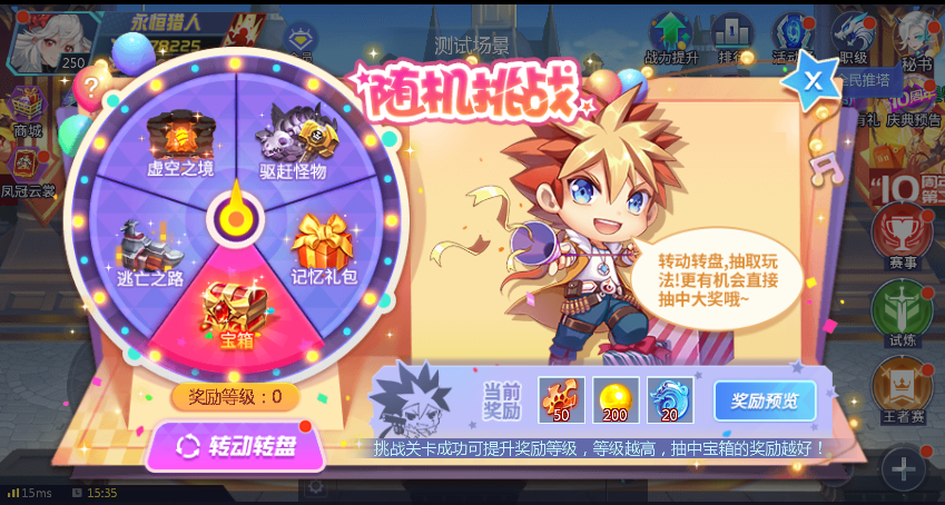 2、若转到宝箱,将立即获得当前挑战等级所对应的奖励,此外还可以继续转动一次转盘