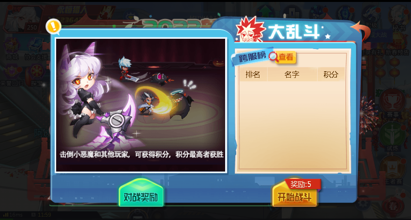 3、战斗时间结束时,按照积分进行排名与结算,并发放对应奖励,每天前5次均可获得排名奖励,有机会获得250级装备、魔炎石等奖励