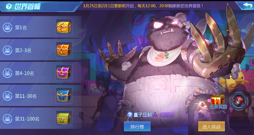 3、系统将根据当场伤害最高一次进行记录排名,新的世界首领开始时将清除前一轮排行榜记录