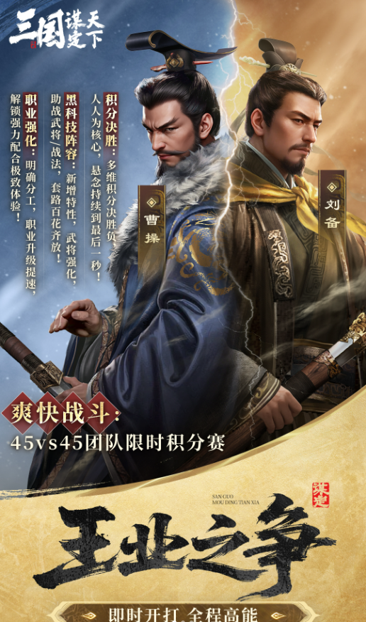 王业之争的每一轮对战都充满了新鲜感:随机出现的专属战场特性与三名强力强化武将,彻底避免了队伍同质化,你需要根据特性加成设计阵容联动,合理搭配强化武将才能锁定胜局;各职业全新天赋的上线,让职业玩法更加灵活多变,为配队博弈提供了更多空间。同时,玩法内无需准备武将等级与资源,系统已全部安排妥当,你只需专注排兵布阵,再配合武将补兵加速、重伤快速恢复、秒回城的满额续航,尽情享受战斗的畅快。更有运粮截粮、攻城守城的多线动态对抗,核心目标不断转换,拒绝拖沓,每一场对决都考验着你的极限策略。