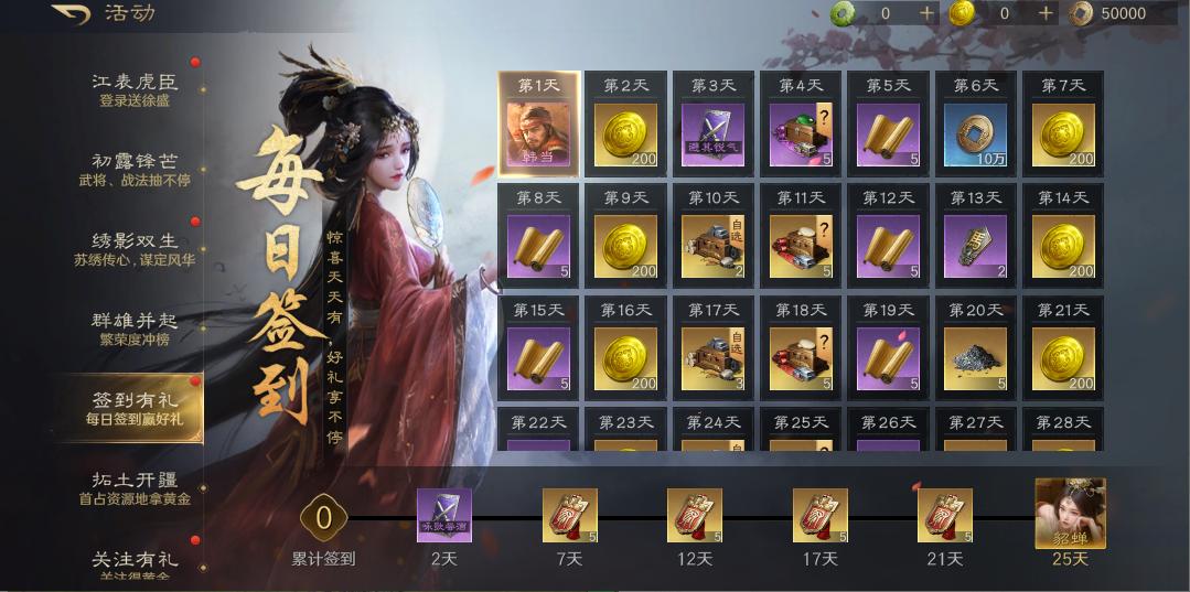 《三国:谋定天下》为新手玩家准备了丰厚的福利,让大家能轻松开启三国征程。创建角色后即可领取全服预约奖励,包含强力橙色武将徐盛以及大量黄金、求贤令等。通过第六章还可以获得橙色武将"蔡文姬",七日狂欢活动中第二天就能获得橙色武将孙策。每日登录完成任务可获得珍稀代币"青玉印"。这些福利让新手玩家无需担心初期资源不足的问题,能够快速组建自己的队伍。