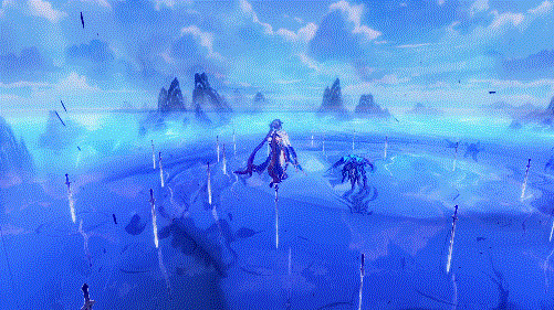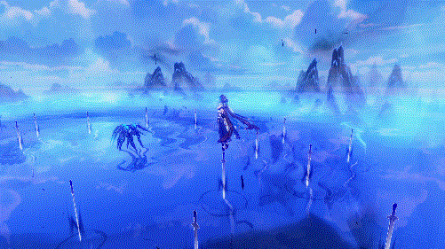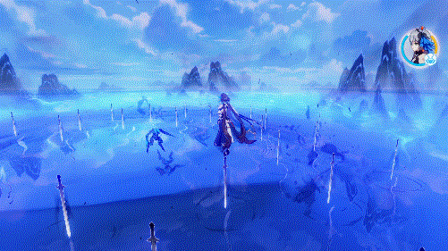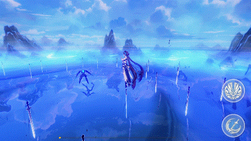 处于剑阵状态时,长按攻击键可释放【万剑归心】,对敌人造成高频冰冻元素伤害,适合用于应对高频护盾,并触发时空断裂效果,技能释放期间可直接切换角色。