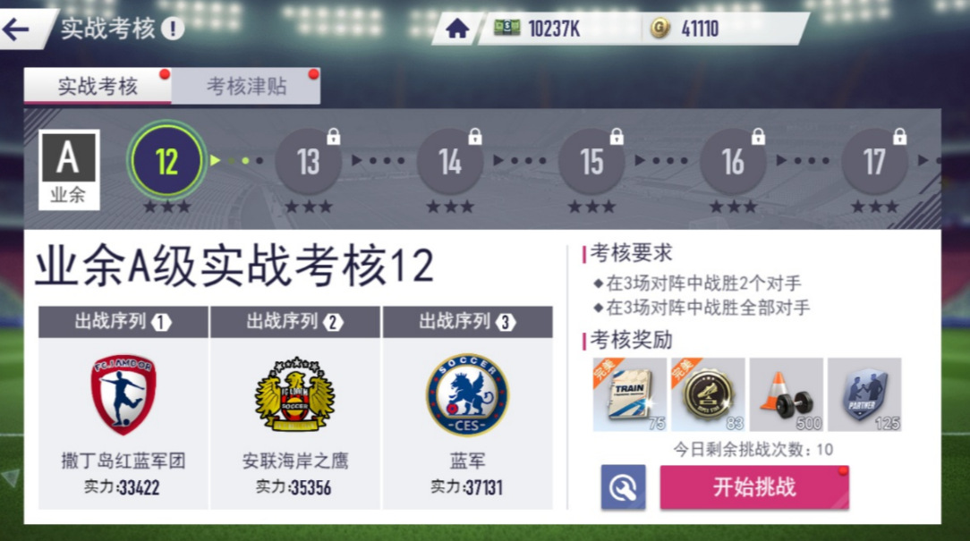 每个关卡,经理人使用自己的3套阵容进行挑战,可以自由调配自己的挑战序列,例如阵容A挑战序列2球队同一套阵容不能同时挑战多个对手。