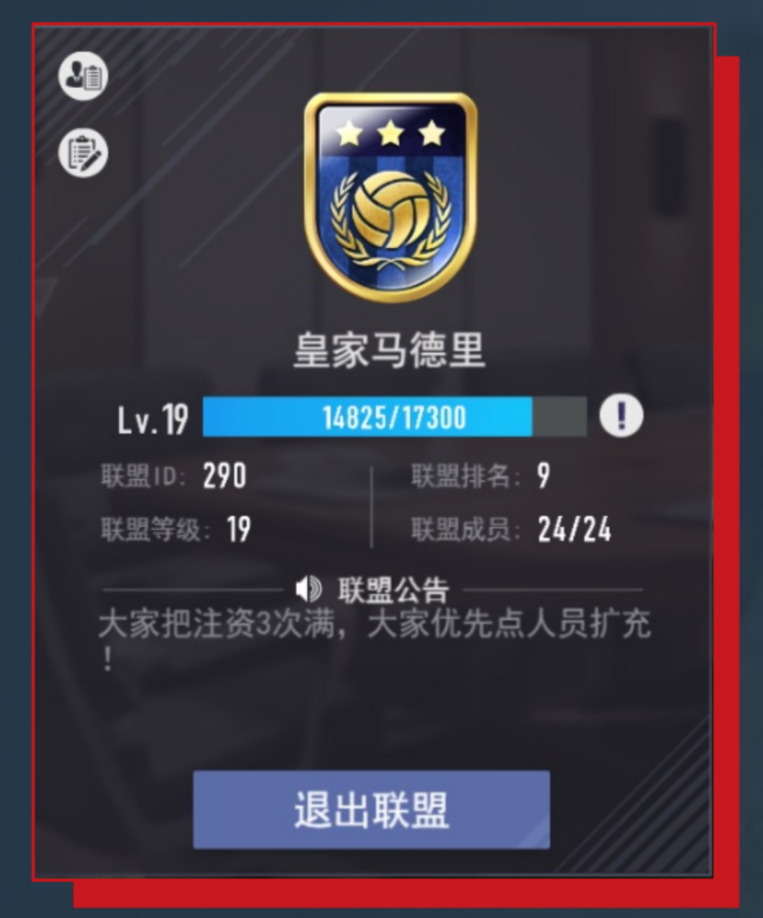 联盟需要成员进行捐赠科技点提升联盟各项功能上限,其中包括联盟成员上限数量,赞助奖励、球队实力以及商店优惠特权。