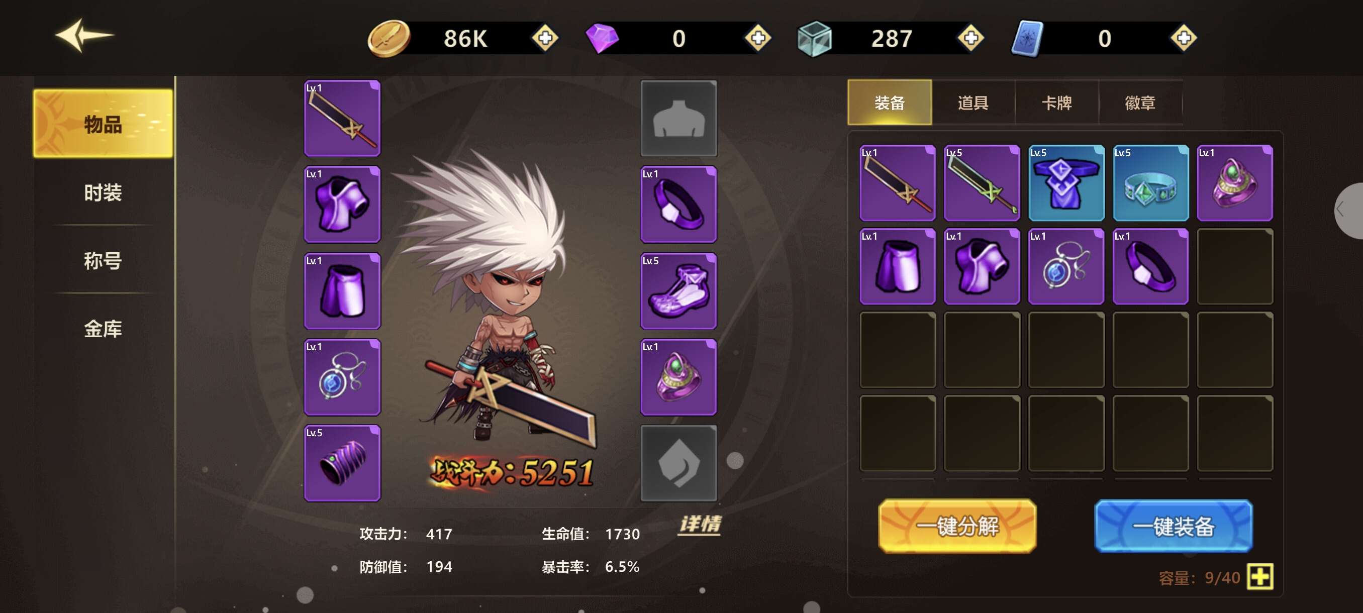 玩家可以通过副本刷取装备,点击一键装备将自动使用物品栏中战斗力最高的装备